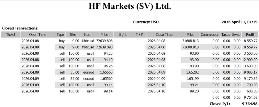 ✅ トレード結果(4月6日~4月10日)📊 週間合計:+9,764 USD 📉 要点整理・EUR/AUDでしっかり収益を確保・原油の方向転換には対応しきれず取り逃し 🔎 マーケットの特徴今回の相場はシンプルではありません […]